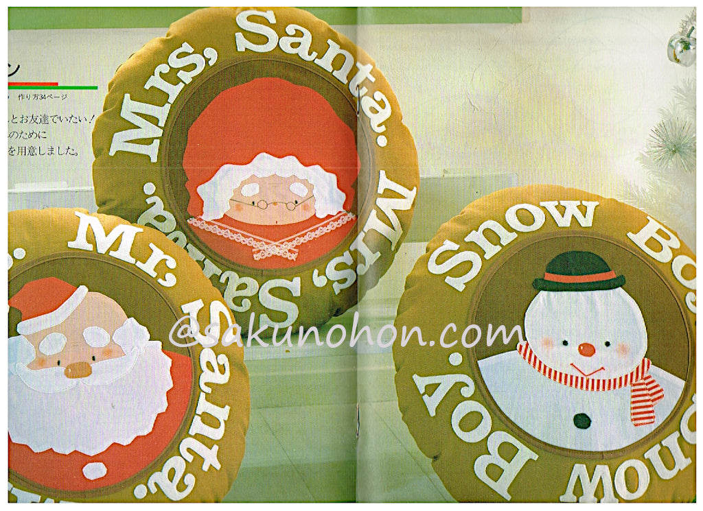 ◆リースとオーナメント クリスマスリース ドア飾り 壁かけツリー ミニツリー Mr.サンタとMrs.サンタ タペストリー ブローチ サンタとねずみ ポシェット 靴下 バスケットとうさぎ エンゼル クッション ギフトボックス ママとわたしのエプロン ワイン袋 サンタの帽子(編物) おしゃれなくまさん(あみぐるみ) プレゼント袋とメロディオーナメント 額とミニ額(クロスステッチ) クリスマスカード
