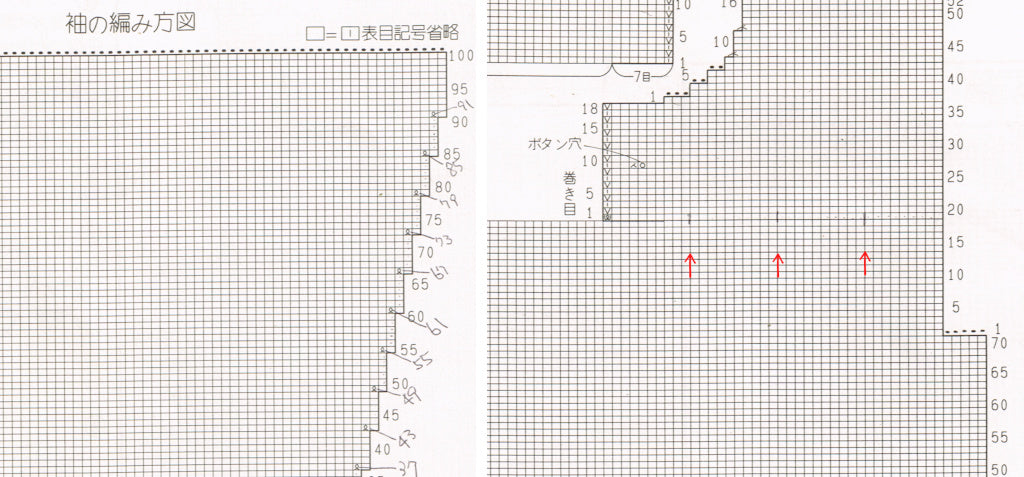 ◆状態C 表紙裏表紙スレ縁角少イタミ 天地小口ヤケ 作品1点の編み方図(身頃と袖)に書き込み(最後の画像でご確認願います。身頃の分かりづらい箇所に赤矢印を表示しています)その他切れ折れございません