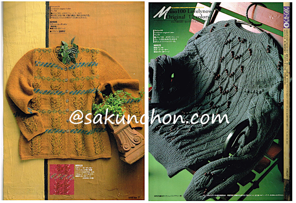 ◆作品数24 表紙は多色を編み込んだベスト、秋色フェアアイル(大人用2点、100cmのカーディガン、110cmのプルオーバー)、斜め編カーディガン、縞のデザインベスト、丸ヨークセーター、クンスト編みのハンカチーフ3種 他