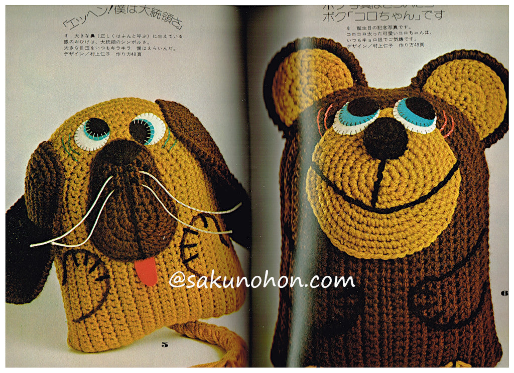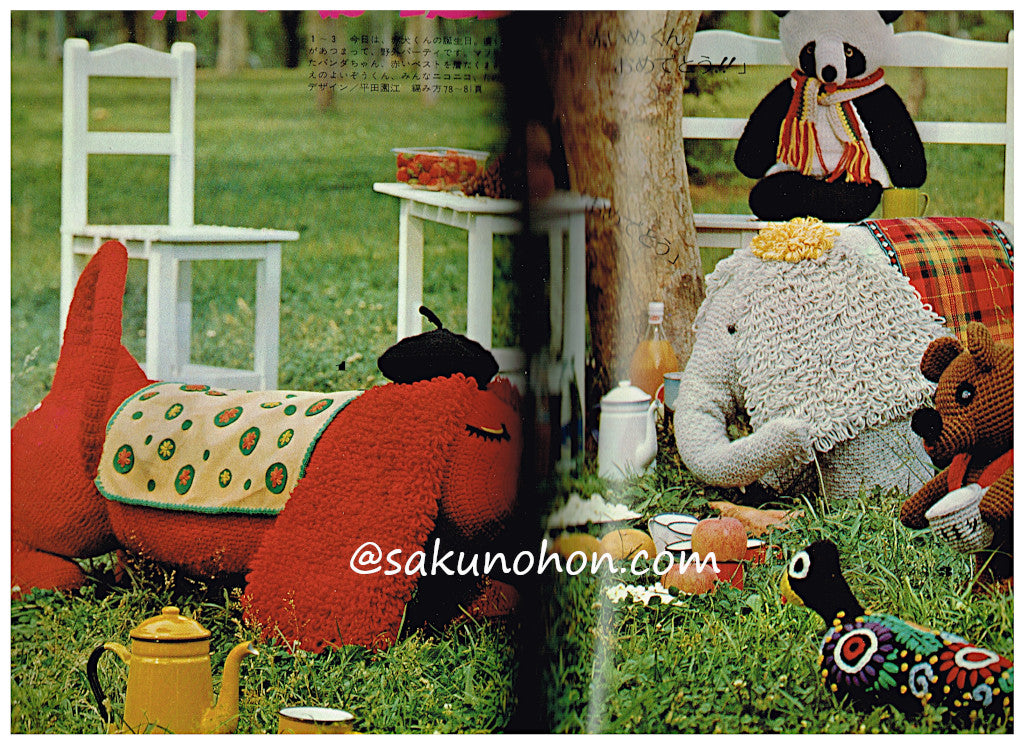 ◆モチーフで作った可愛いペット/パパ お話きかせて/腕くらべ/背高ノッポのお医者さん/日曜日はお留守番/運動会/子ぐまのファッションショー/ブランコ遊び/赤犬くんの誕生日/いたずらゴン君/ボクたちの名前を 知ってるかい/可愛い贈りもの(マスコット・ミトン、肩たたきカバー、指人形)/編みぐるみ作りの基礎