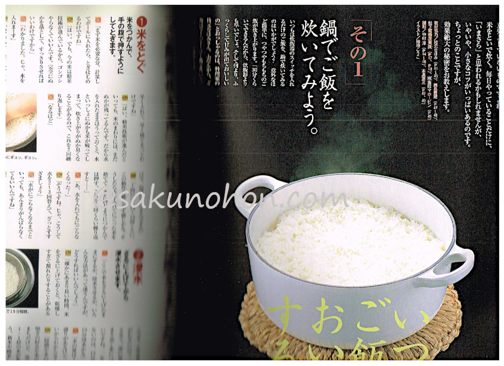 【いつものご飯をおいしくするワザ】その1.鍋でご飯を炊いてみよう(枝元なほみ)/その2.炊飯器で、もっとおいしいご飯を炊こう!/その3.お米の買い方、保存のしかた/その4.うわさの家庭用精米機/