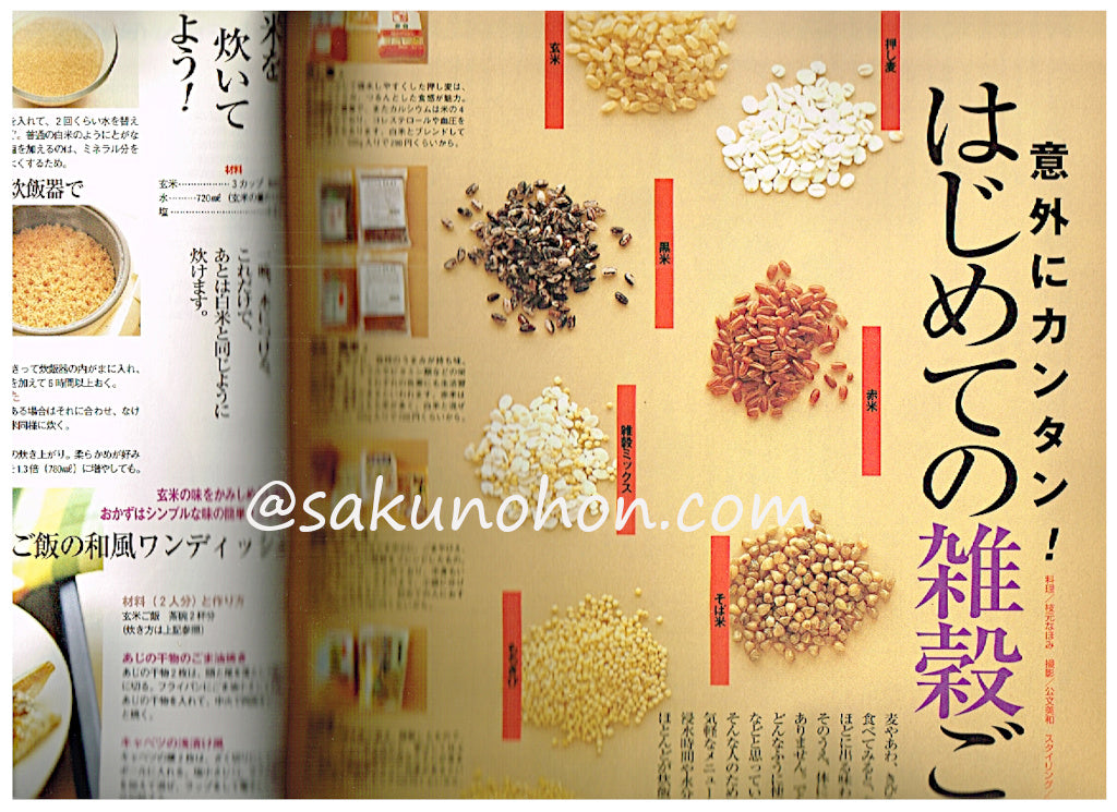 【意外にカンタン!はじめての雑穀ごはん(枝元なほみ)】玄米の炊き方/玄米とモロヘイヤのねばねば丼、玄米と大豆のカレー、麦とろご飯、こんがりそば米ご飯、麦のきのこリゾット、根菜スープご飯、黒米おむすび etc.