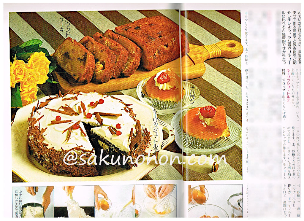 果実酒を使ったお菓子と飲み物 (パウンドケーキ サバラン オレンジ・ババロア クレーブ ババロアバイ ゼリーケーキ ビーチサンデー バナナフラッベ ミントフィズ フルーツポンチ ストロベリーケーキ スプリングスカッシュ オレンジバンチ バナナシェーク ツートンカクテル ルシアンティ)