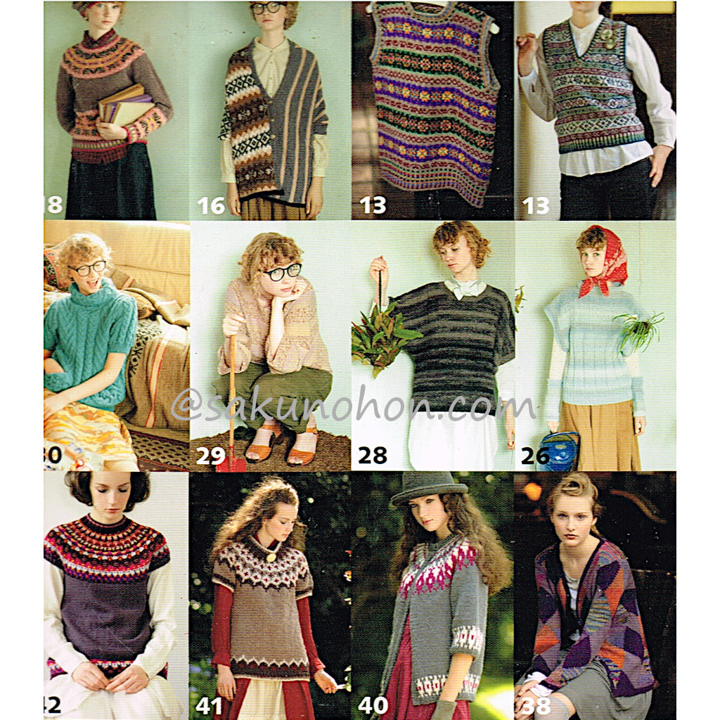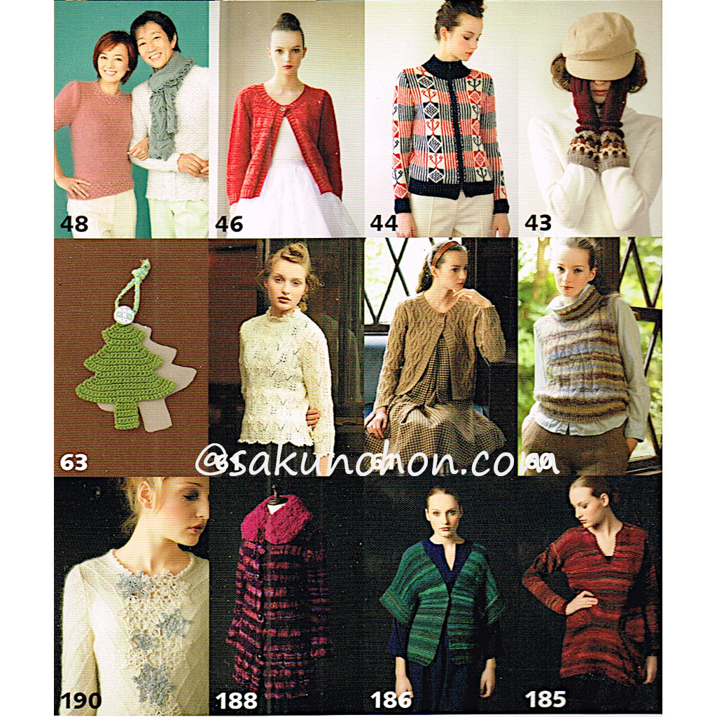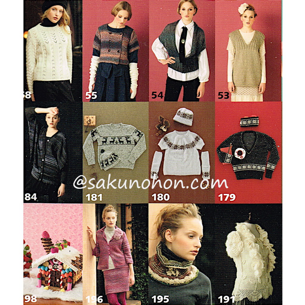 「新・伝統ニット」セルブー・コフタ(岡本啓子) セテスダール・コフタ(原田睦美) ガーンジー(岡 まり子) ボーダー(兵頭良之子) アラン(柴田淳 岸睦子) アーガイル(河合真弓 横山純子) ロピー(武田敦子 岡本真希子) ブーヒュース(岡本啓子) ビング(笠間綾)