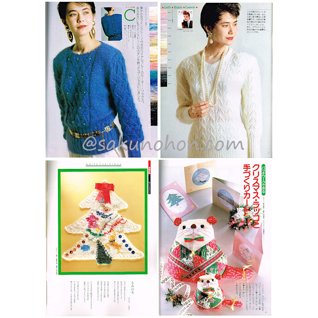 エンジョイニット・誌上レッスン「クリスマスを編みましょう」(タック編がアクセントのVネックセーター 白モヘアのVネックセーター ラインストーン付きのセーターブラウス)