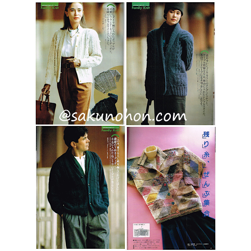 この冬のおすすめファミリー・ニット(ラウンドネックプル ボッブルを入れたラウンドネックのカーディガン メンズ・ケーブルを入れたY衿カーディガン 6~7歳用・ポンポンとモチーフアップリケで飾ったクリスマスセーター シルクモヘアのカーディガン ショールカラーのロングジャケット)